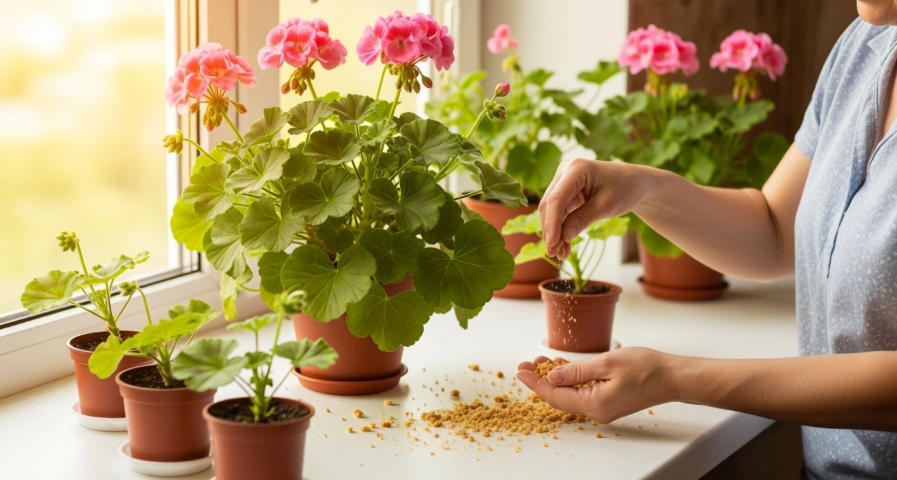 Щепотку в горшок в июле — и герань преобразилась: листва остается зеленой, а бутоны появляются даже на молодых черенках