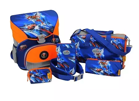 Минимальный вес, большой внутренний объём ранца с многочисленными внутренними отделениями и внешними кармашками, позволят ученику легко уместить все школьные принадлежности и разнообразные мелочи, при этом тяжесть самого ранца составляет всего 800-900 граммов! Благодаря мягким подушечкам и крепкой спинке, ранец идеально сидит на спине и практически не стесняет движения ребёнка, а твердое дно с пластиковыми ножками гарантирует устойчивость ранца и защищает его от намокания. Весьма приятным дополнением является: спортивная сумка, кошелек и два пенала с наполнением, выполненные в одном стиле вместе с ранцем.