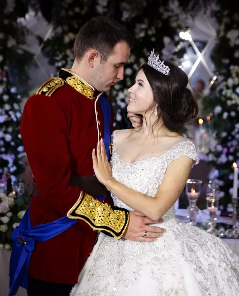 Стоит отметить, что одни из самых известных молодых миллионеров страны выбрали интересный стиль церемонии - королевский. Многие уже успели сравнить наряды молодоженов со свадебным образом принца Уильяма и Кейт Миддлтон. Жених надел мундир, а невеста - белое платье принцессы с огромным шлейфом, которое весит 16 килограммов.