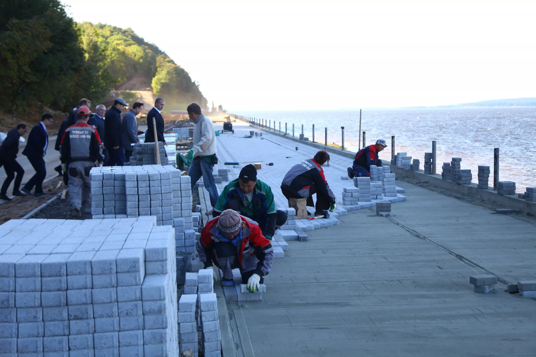 Сейчас идут работы по установке ограждений, уложен нижний слой асфальтобетонного покрытия протяженностью 800 м и более 40 метров брусчатки. Ладыков обратил внимание на постройки, которые расположены вдоль набережной и поручил в течение 5 дней определиться с внешним видом ограждений вокруг зданий, чтобы в последующем привести их в единый вид.