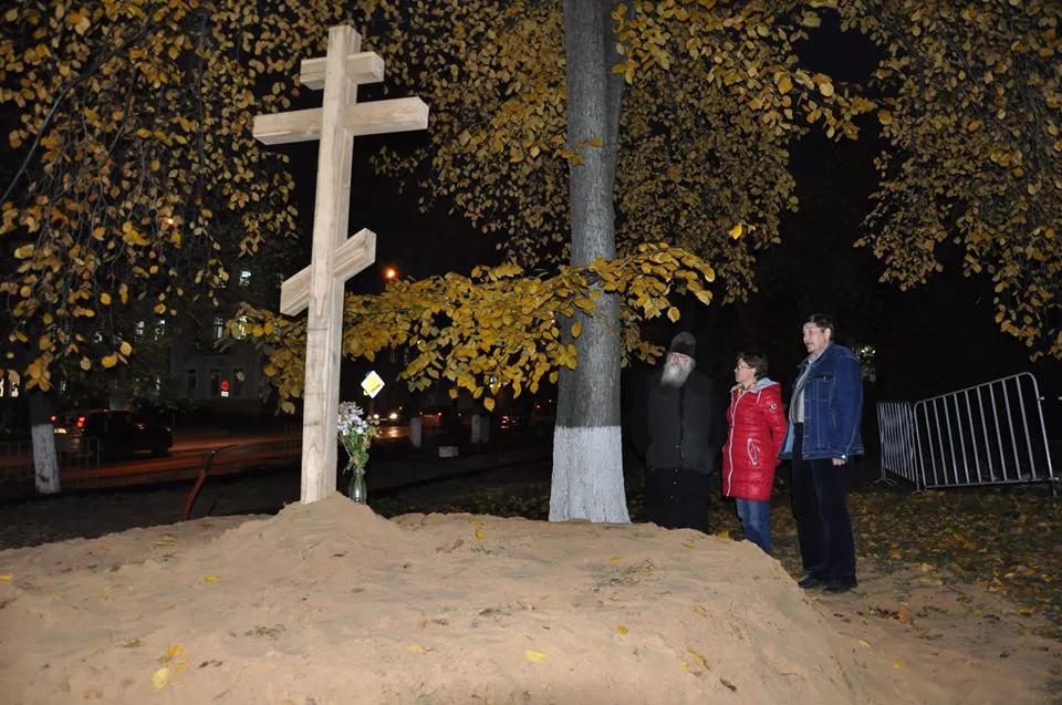 В понедельник, 16 октября, в сквере Константина Иванова в Чебоксарах установили крест. Как выяснилось, он установлен в месте, где временно перезахоронили шесть найденных человеческих останков. Об этом в социальной сети сообщают священнослужители.