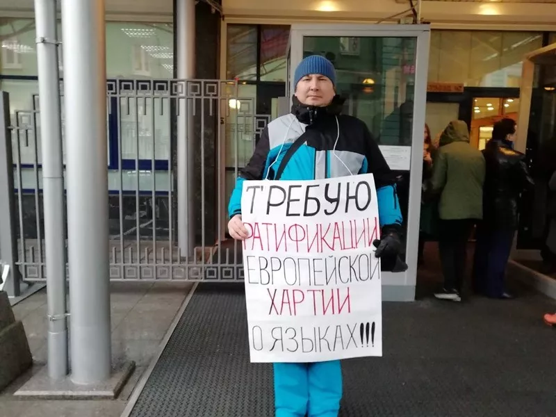 Другой пикетчик, ульяновский чуваш Валерий Сунгуров, написал на своем плакате, что требует ратификации Европейской хартии о языках.