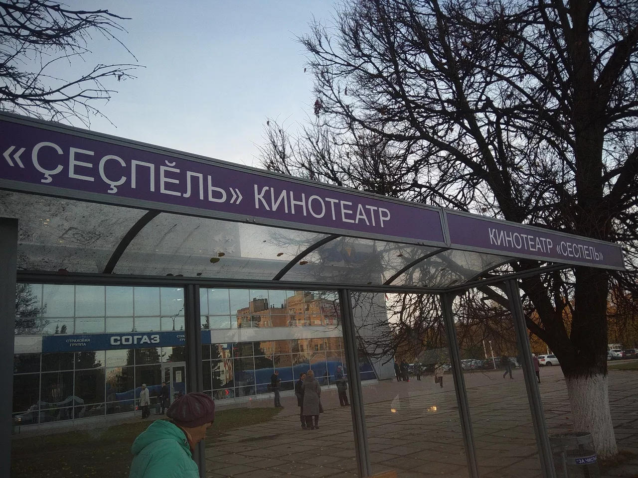 Ошибка в названии остановки «Ҫеҫпӗл» кинотеатр» появилась недавно. Что интересно, параллельно стоит само здание кинотеатра, где находится театр юного зрителя имени Михаила Сеспеля. На вывеске театра есть правильно написанные названия как на чувашском, так и на русском языках.