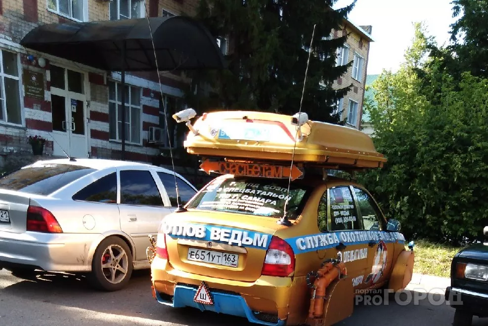 5 июля жители города наблюдали на улицах примечательную машину. На автомобиле желто-золотого цвета просматриваются надписи «Отлов ведьм» и «Служба охотников за ведьмами». На дверке изображена женщина на метле, а передний бампер машины оборудован зубами.