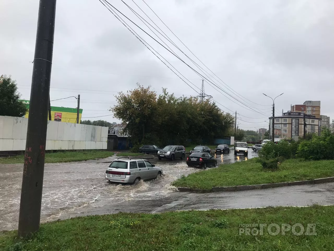 В Чебоксарах ливень затопил улицы: "Машины плывут, маршрутки застревают"