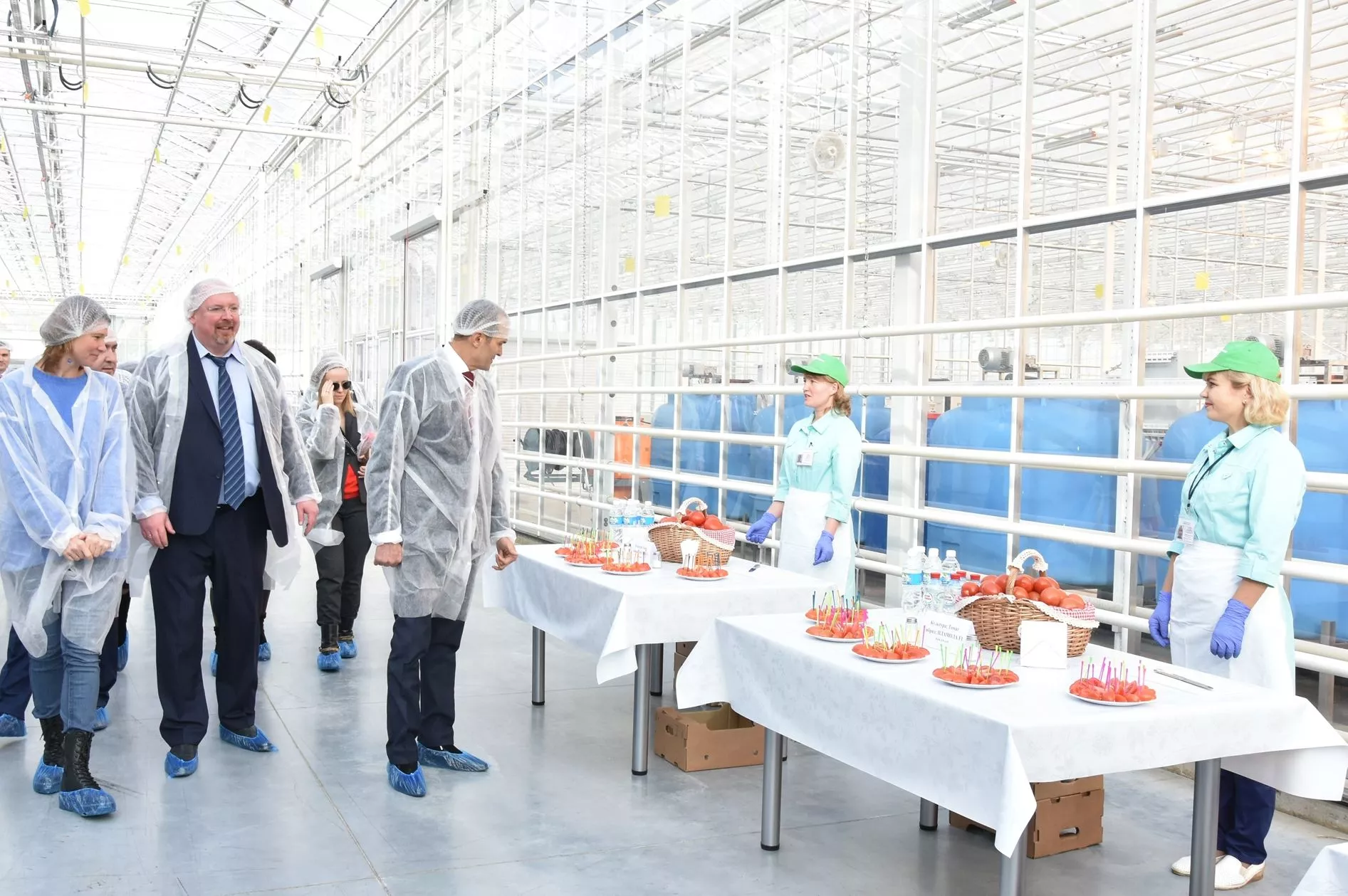 «В ходе экскурсии по предприятию гостям продемонстрировали ряд преимуществ, которыми благодаря применению инновационных технологий обладает теплица пятого поколения – так называемая полузакрытая теплица, созданная по технологии Ultra Clima», — добавляют в пресс-службе.