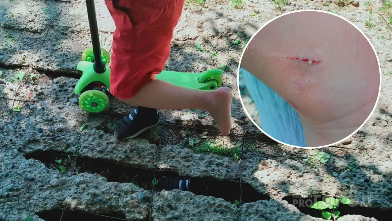 16 июня в "Про Город" обратилась чебоксарка Алена Николаева. Она рассказала, что ее 4-летний сын угодил в ловушку практически в центре города. Пешеходная дорожка на улице Чапаева около школы № 6 и детского сада № 6 давно нуждается в ремонте. Нога ребенка провалилась и застряла в одном из множества отверстий, образовавшихся на пешеходной дорожке.