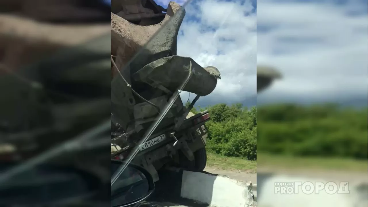 30 июня около 12 часов в Чебоксарах около Сугутского моста произошло ДТП. Тяжеловесный КамАЗ налетел на отбойник. Автомобиль двигался со стороны Гражданской улицы.