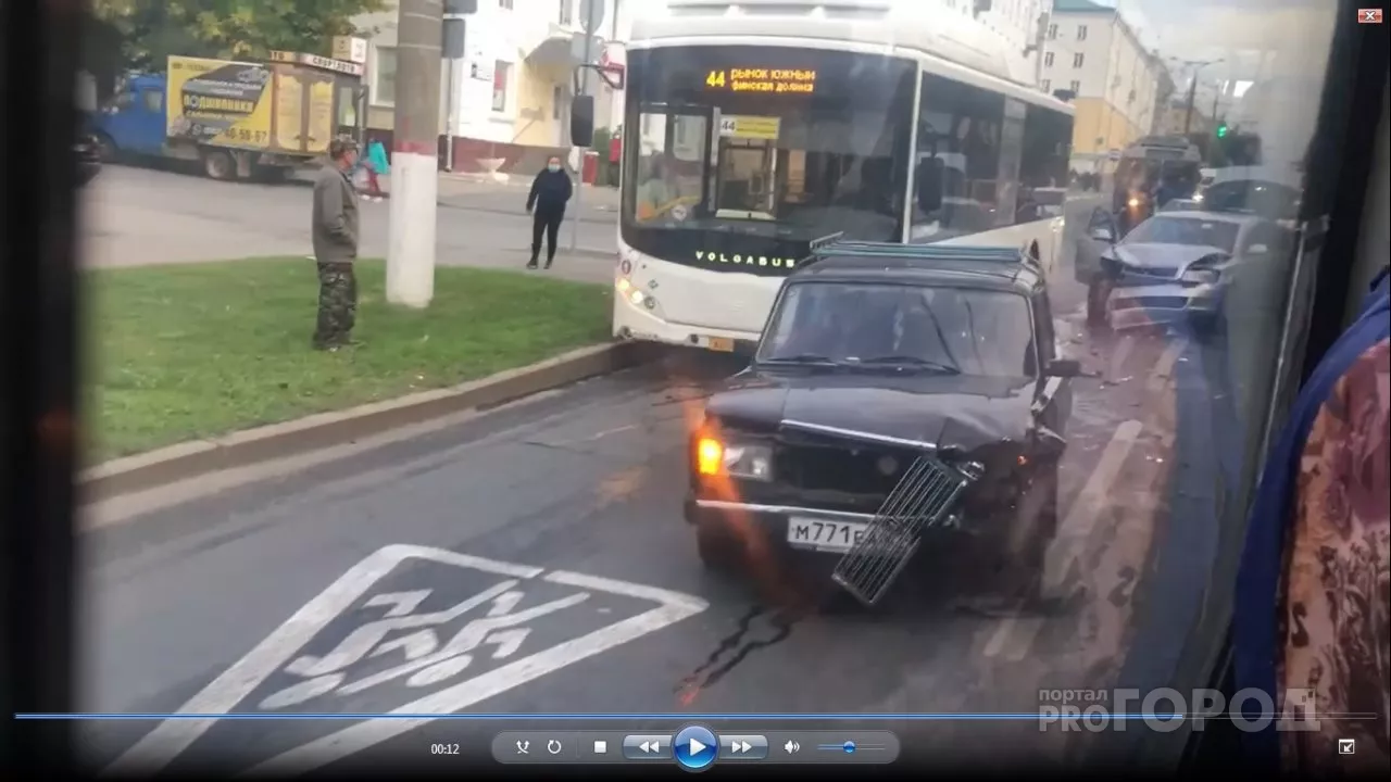 В Чебоксарах в час пик столкнулись 44-й автобус и две легковушки