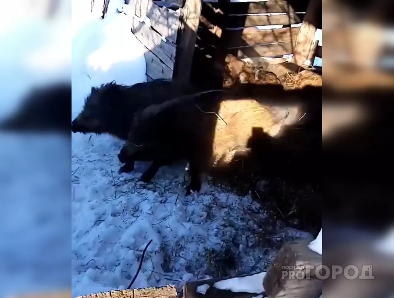 В Чандрово во дворе частного хозяйства по улице Совхозная поселилось стадо кабанов. Убежище дикие звери нашли в небольшом сарайчике. Там они ютятся уже с декабря. Хозяин дома время от времени подкармливает животных.