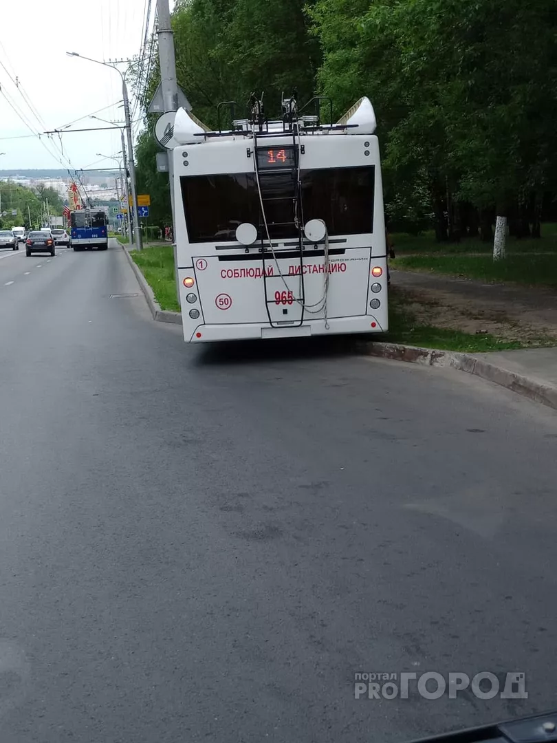 В Чебоксарах троллейбус вылетел на газон