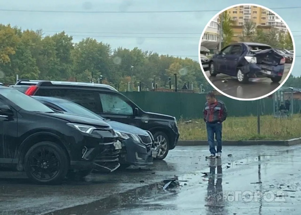 В Чебоксарах утром произошло массовое ДТП из пяти машин: "Логан" очень сильный удар получил"