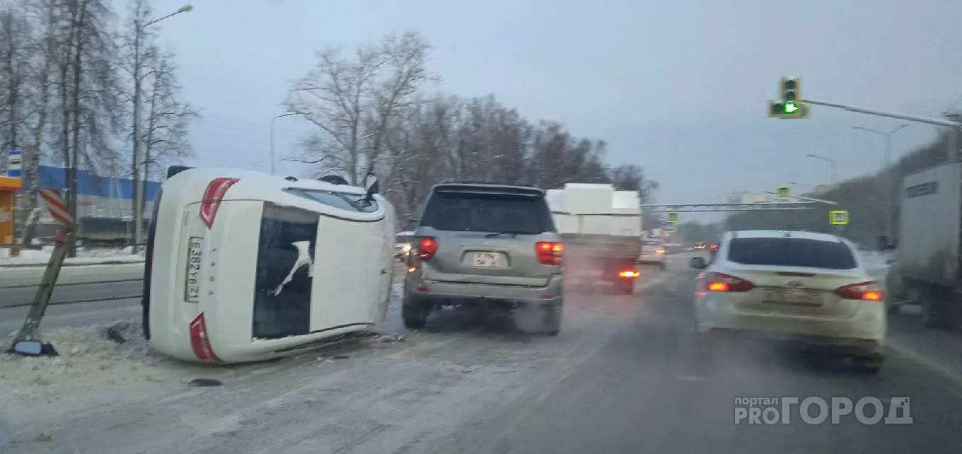 На Канашском шоссе “Лада Веста” перевернулась на бок