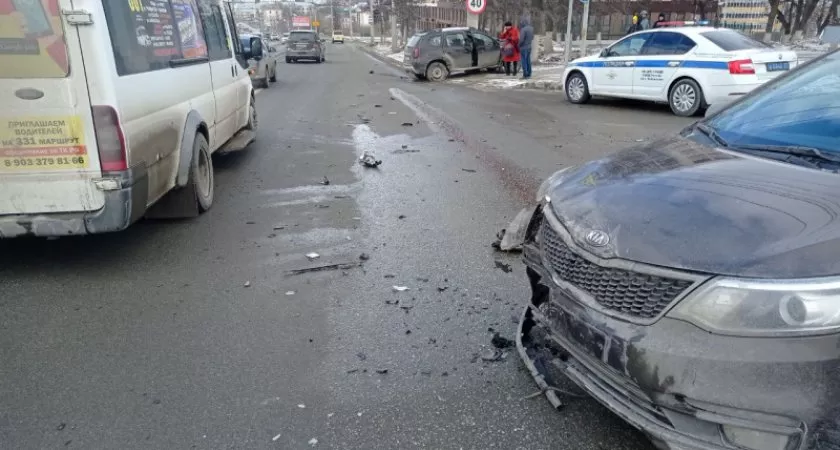 60-летний водитель на "Рено Дастер" проехал на запрещающий сигнал светофора и врезался в "Киа Рио". За рулем иномарки находился молодой человек 26 лет.