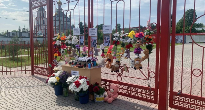 После трагедии в Шихазанах у ограждения парка с памятником погибшим воинам и "Стеной Памяти" поставили стол со свечами, повесили фотографии погибших школьниц. Люди принесли цветы и игрушки.