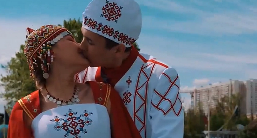 В Москве еще одна пара из Чувашии сыграла свадьбу. Они нарядились в национальные костюмы. Об этом сообщают власти Янтиковского района, откуда они приехали.