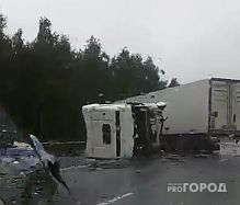 В пресс-службе УГИБДД по Чувашии пояснили, что предварительно водитель DAF с полуприцепом не справился у управлением и врезался в отбойник, выехав на полосу встречного движения.