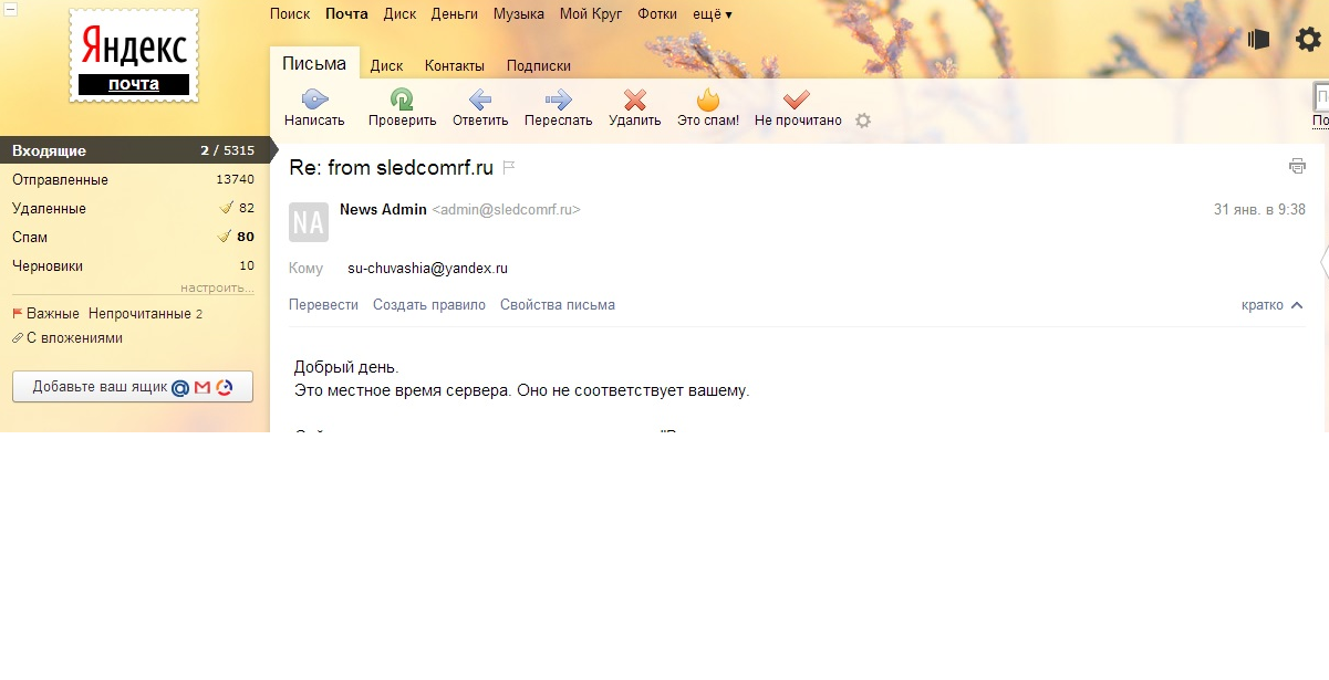 - Это время сервера, оно не соответствует вашему, - говорится в электронном письме. - Сейчас мы думаем, как это можно поправить, наш сайт неофициальный.