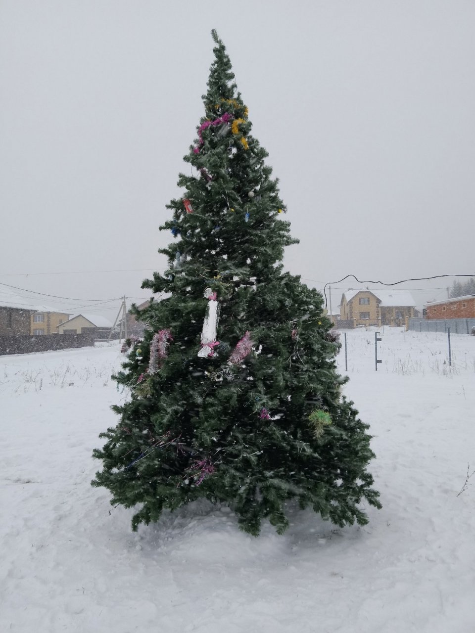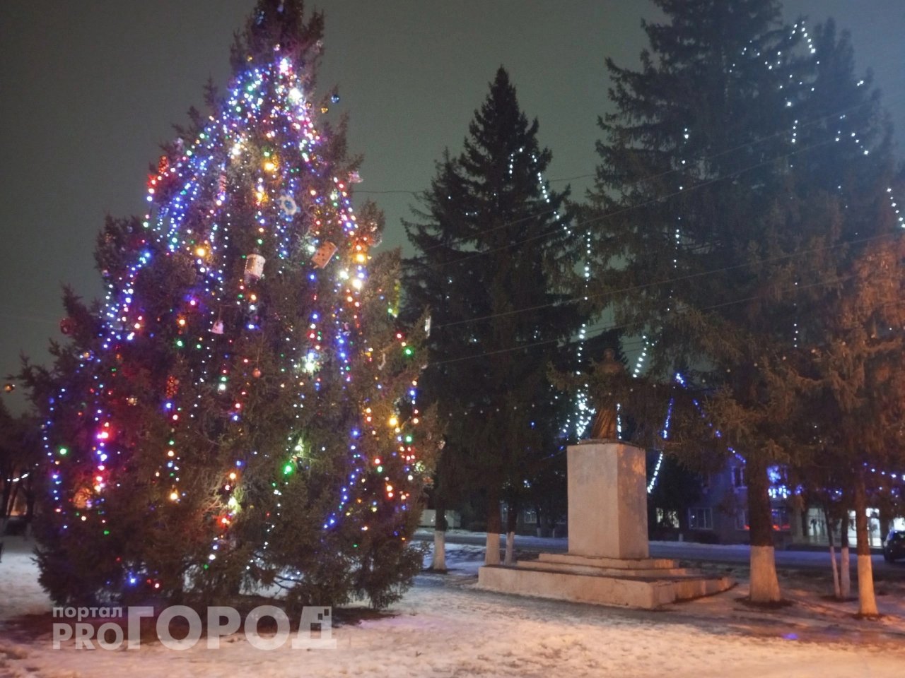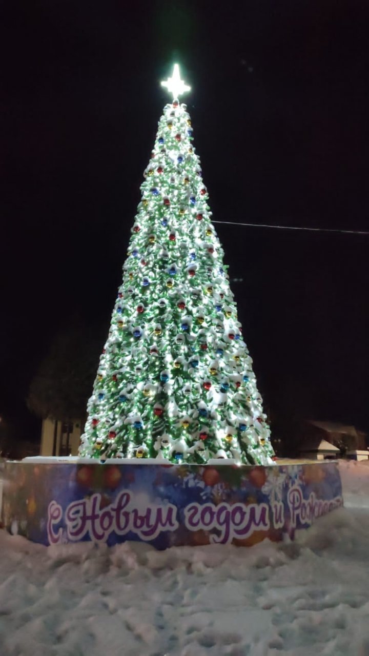 В Красных Четаях новогодняя елка засияла в центре села. Пышное дерево доверху обмотали гирляндами.