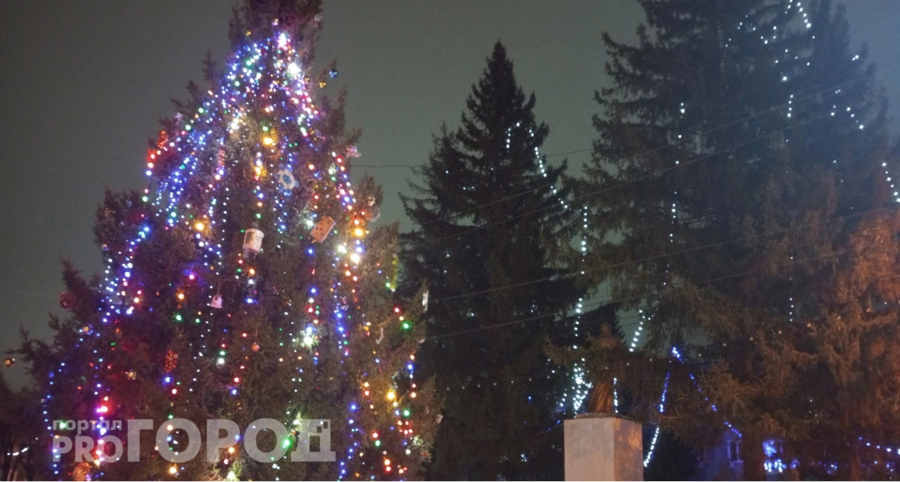 Канашская елка украсила городской парк, соседствуя с памятником Ленину.