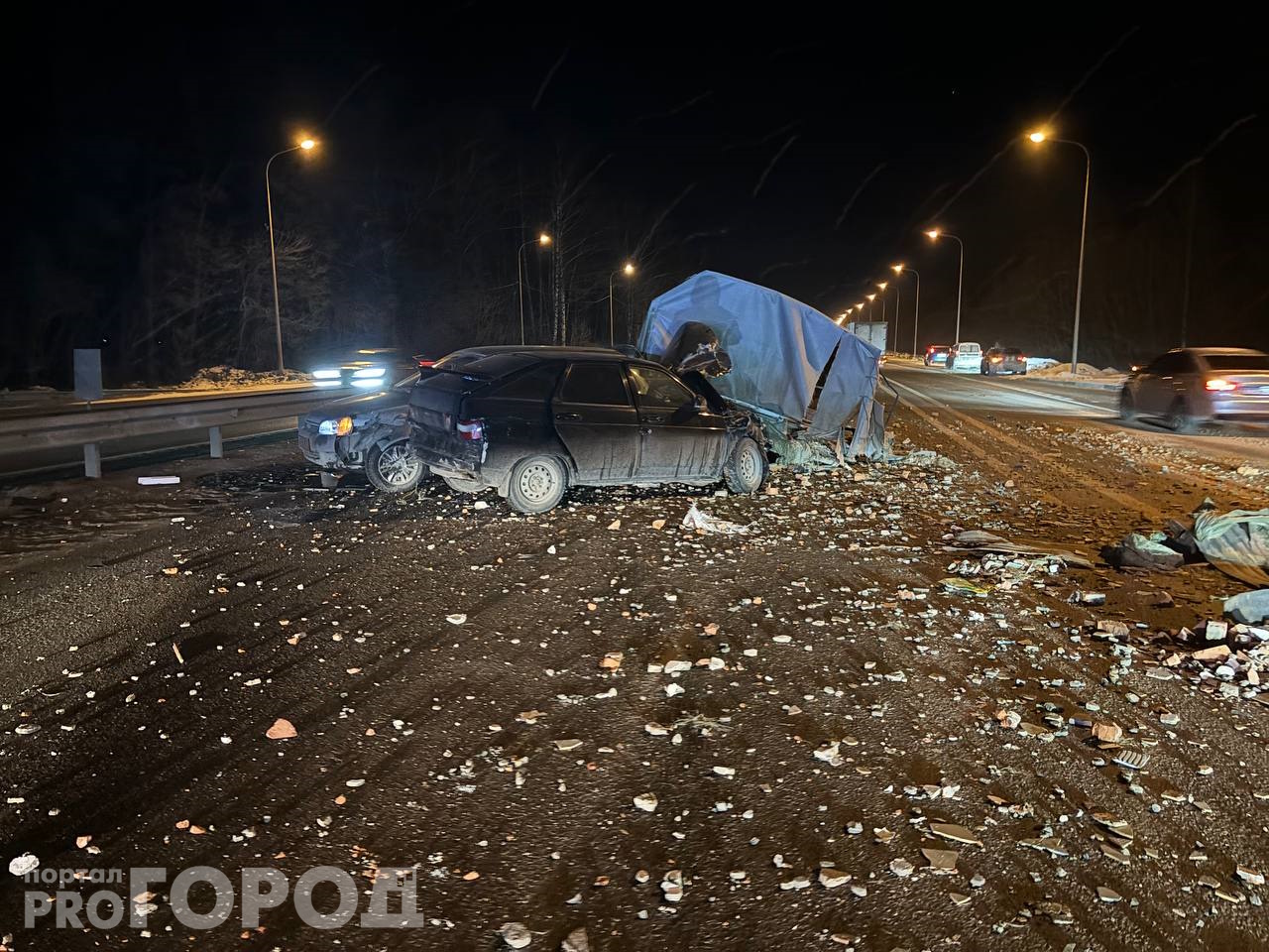 От удара машины развернуло поперек дороги, они перекрыли одну из полос, а по асфальту рассыпалось содержимое прицепа, создавая дополнительную опасность для других водителей.