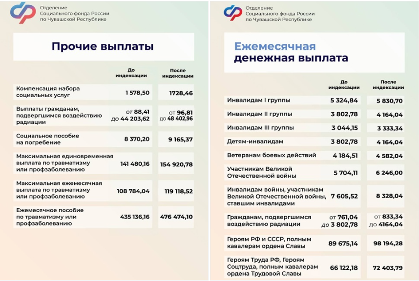 Первого февраля в Чувашии проиндексировали ряд выплат. Это делается ежегодно и беззаявительно исходя из индекса роста потребительских цен за предыдущий год. В 2025 его в размер составил 9,5 %. Об этом сообщают в пресс-службе отделения СФР по Чувашии.