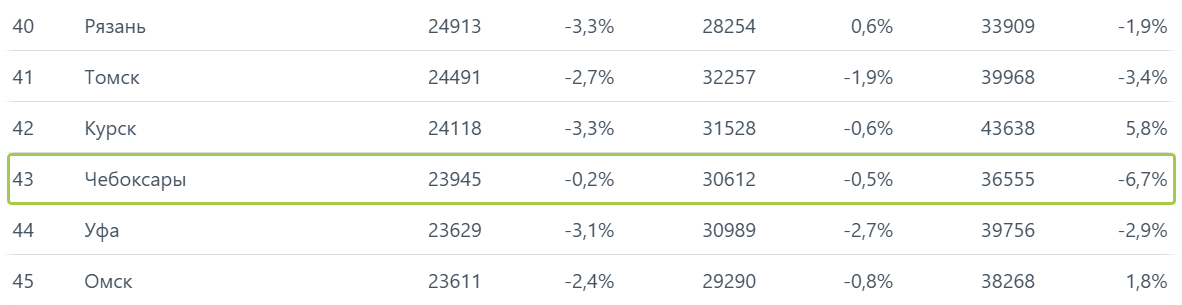 Что касается трехкомнатных квартир, то в Чебоксарах зафиксировано одно из самых существенных снижений стоимости аренды – на 6,7 %. Больше цены упали только в Архангельске, Якутске и Магнитогорске. В Москве "трешки" стали дешевле на 0,4 %, а в Санкт-Петербурге – на 2,8 %.