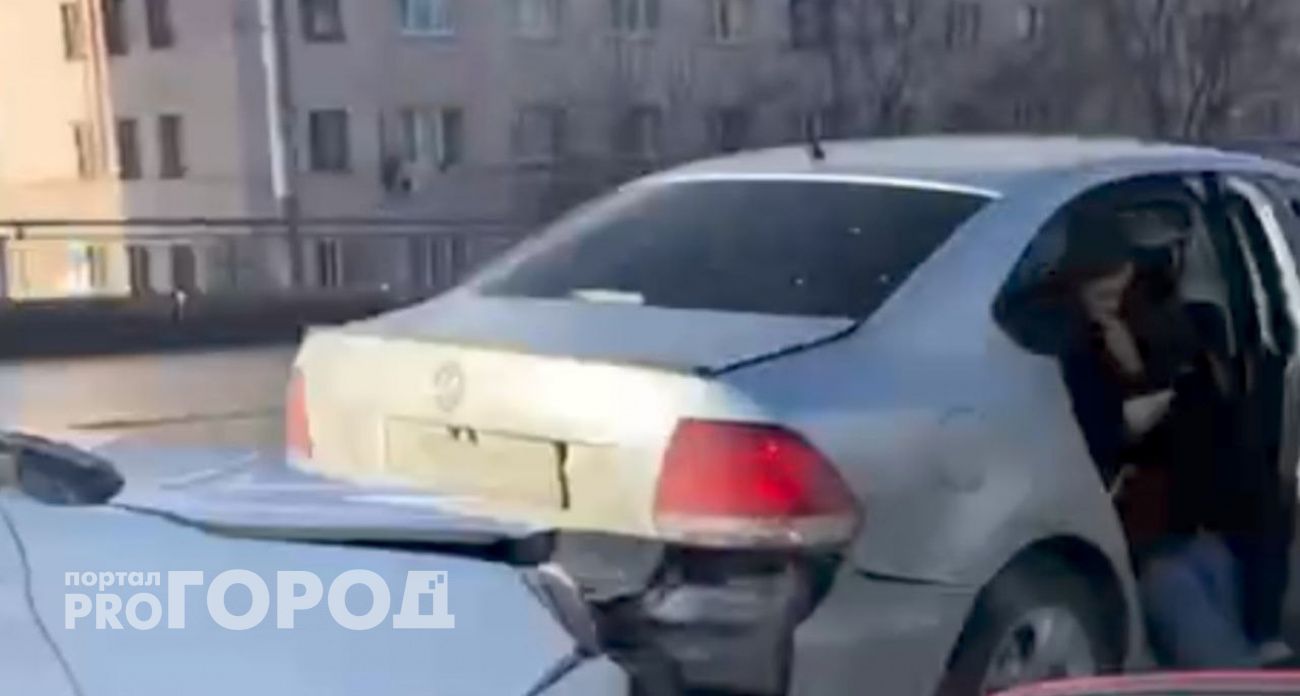 В Чебоксарах на проспекте Мира четыре водителя собрали паровозик