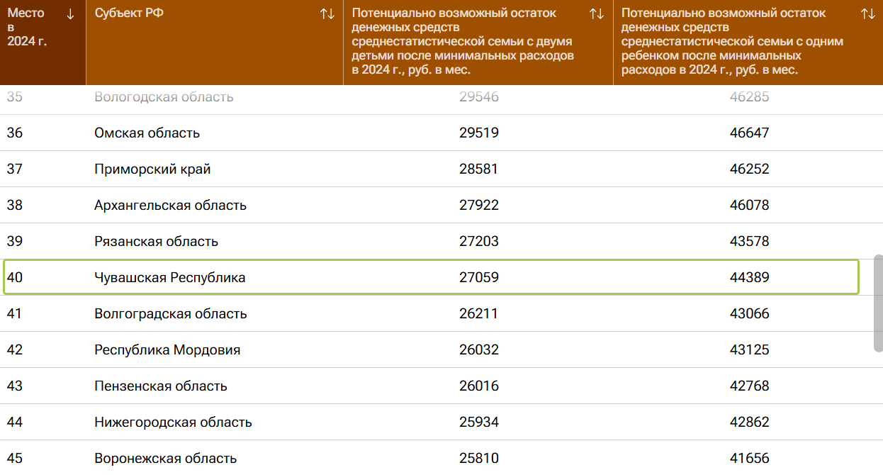 В Чувашии после основных расходов у семьи с двумя детьми остается 27 059 рублей, а если в семье один ребенок – 44 389 рублей. С такими показателями наш регион занимает 40-ю строчку рейтинга из 85 позиций.