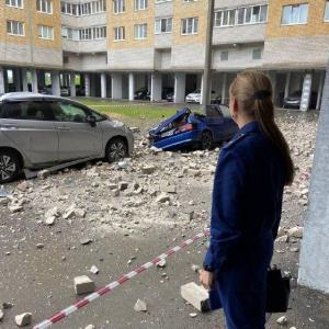 Предварительно установлено, что 2 июня с 17-го технического этажа жилого дома № 13, который построили в 2019 году, упали части кирпичной кладки парапета, которые повредили авто, находившиеся во дворе. На место выехала прокуратура.