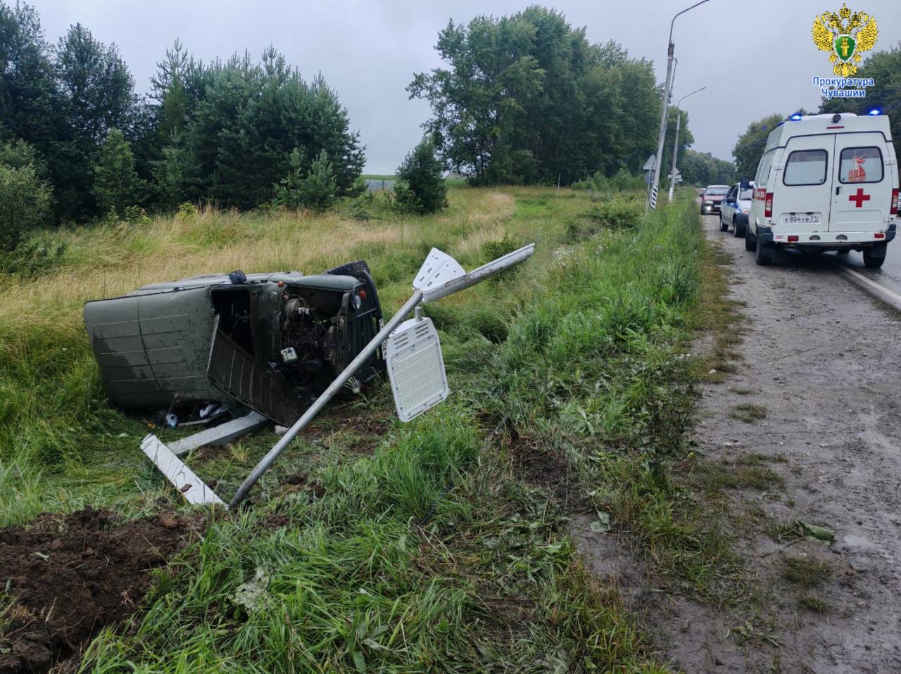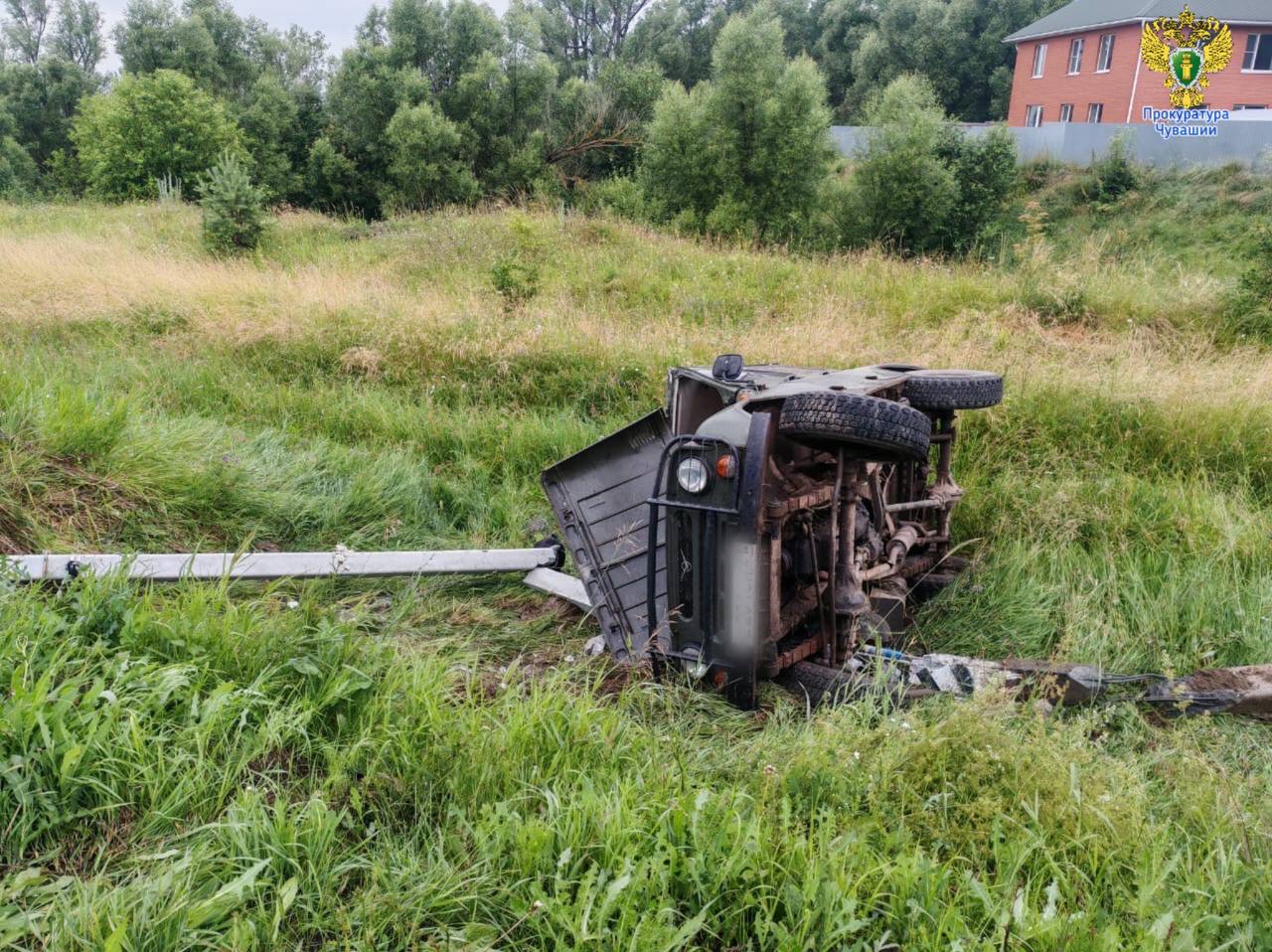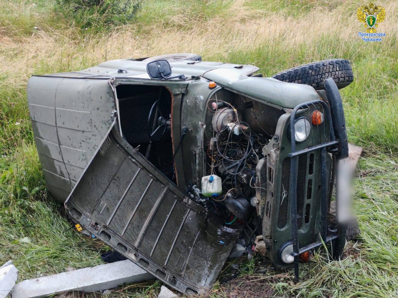 В Чувашии водитель без прав опрокинул в кювет УАЗ с маленьким ребенком в салоне