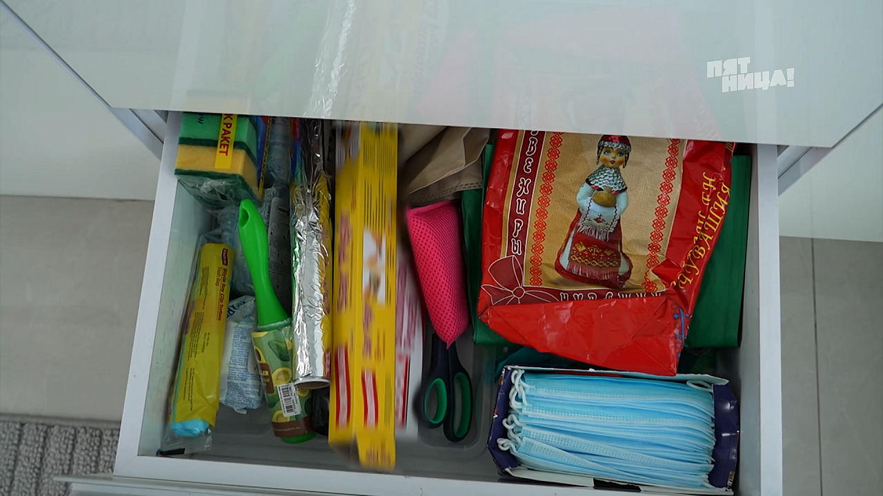 Кстати, именно в этот момент в кадр попала упаковка от чувашских сувениров в шкафу нашей землячки.