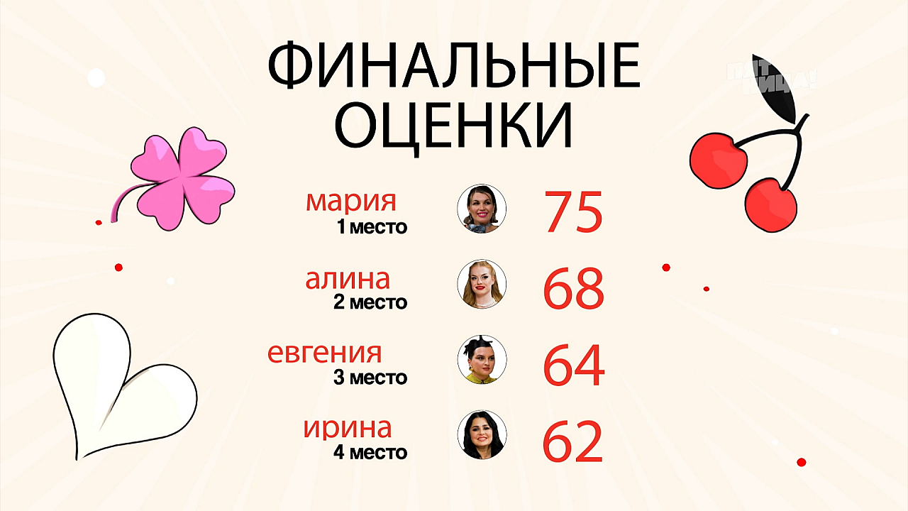 Своих соперниц Евгения, несмотря на то, что в начале передачи призналась в том, что не рада их видеть, оценивала справедливо, не занижая оценки.