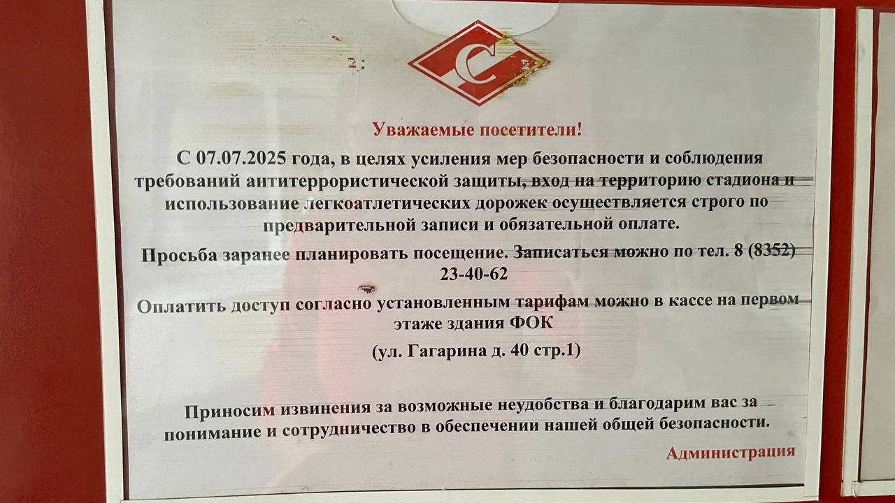 За "доступный" спорт в Чувашии придется заплатить: на стадионе "Спартак" запретили бесплатно бегать
