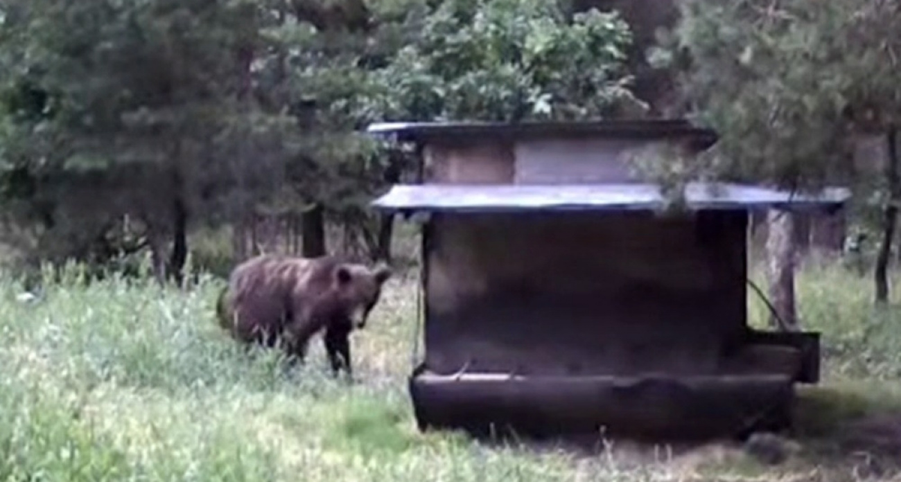 Лесной хищник попал в объектив фотоловушки в шемуршинском охотхозяйстве возле специальной подкормочной площадки, на которой охотинспекторы Минприроды и охотники оставляют животным соль. Медведь спокойно обнюхал содержимое кормушки и ушел в лес.