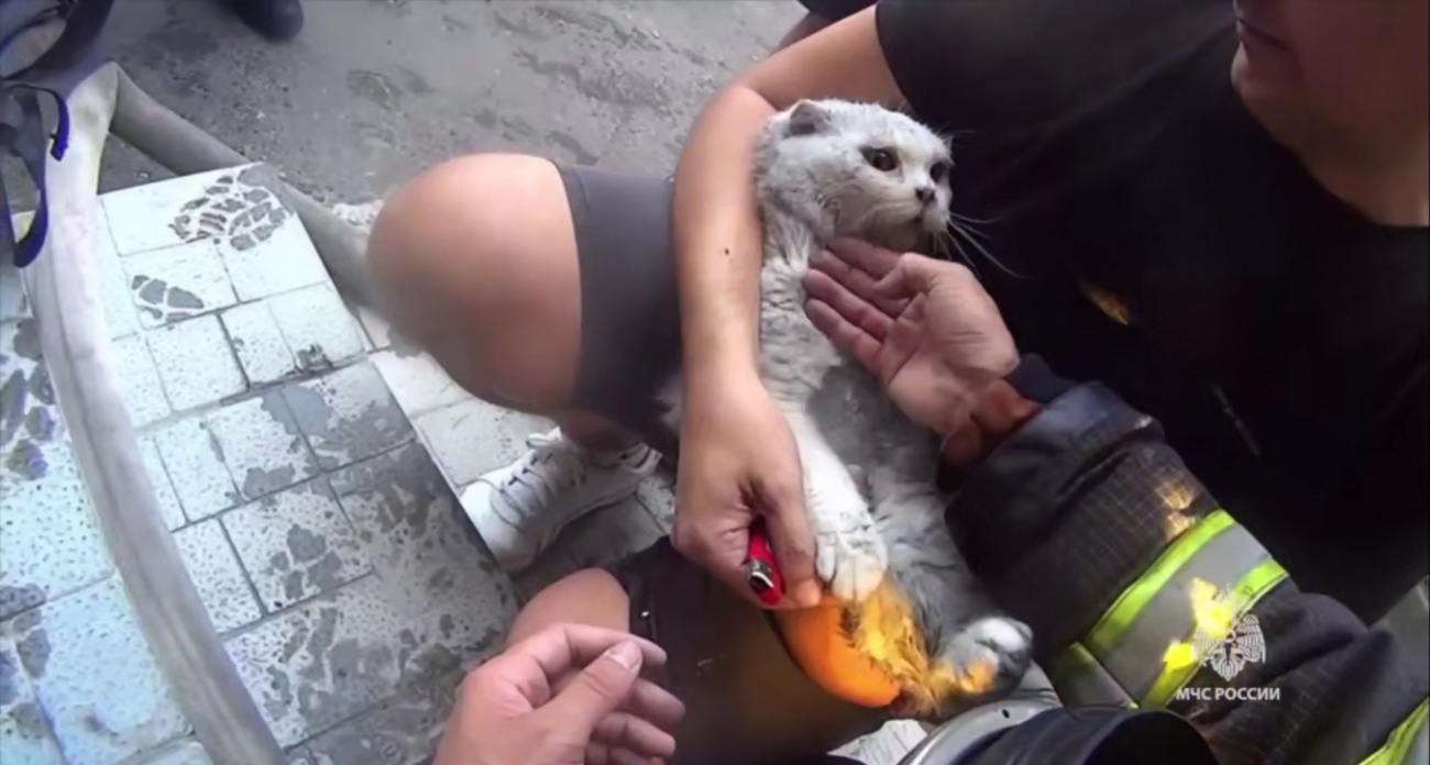 В Чебоксарах пожарные спасли жильцов девятиэтажного дома и вернули к жизни кота, который едва не погиб от угарного газа. Пожар начался на первом этаже и быстро охватил фасад здания. Об этом сообщила пресс-служба МЧС России.