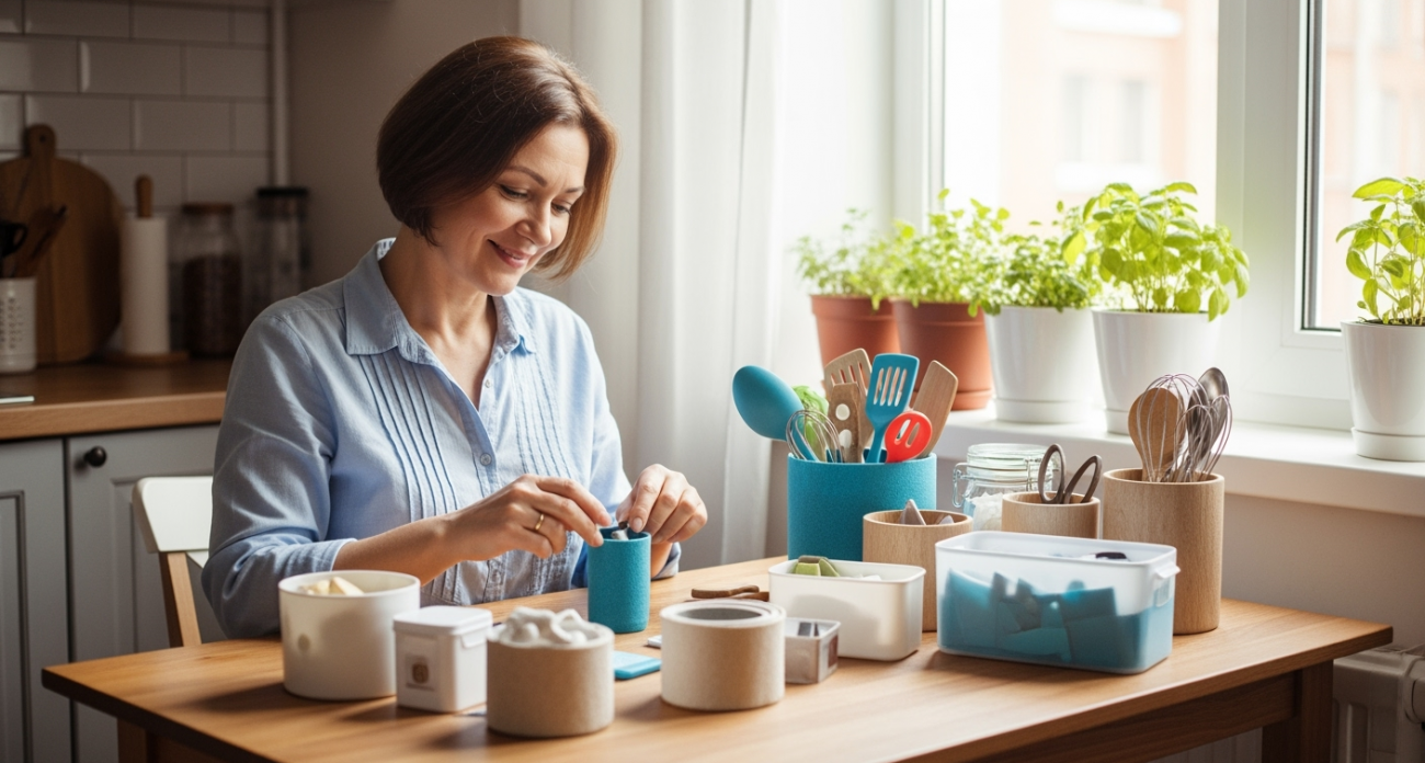 Повторное использование пластиковых бутылок для создания органайзеров.