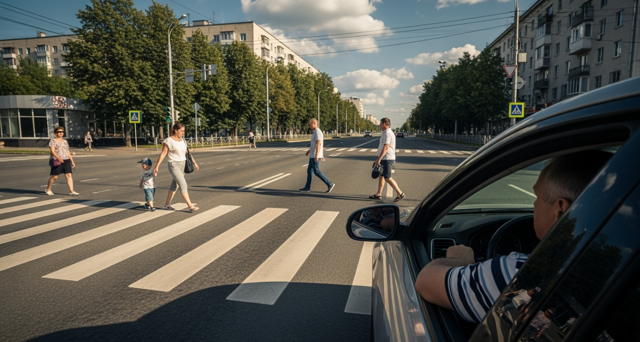 В России пешеходный переход, как элемент наземного транспорта, предназначен для безопасного пересечения проезжей части пешеходами. Согласно Правилам дорожного движения, пешеход имеет безусловный приоритет на нерегулируемом переходе, за исключением случаев приближения транспортных средств со спецсигналами. Тем не менее, водители часто сталкиваются с неопределенностью: когда именно можно возобновлять движение, чтобы не нарушить дорожный кодекс? Например, многие водители полагают, что достаточно, чтобы пешеход просто ступил на противоположную сторону дороги, тогда как Верховный Суд РФ разъясняет, что "уступить дорогу" означает не создавать помех, вынуждающих пешехода изменять траекторию или скорость движения. Это не всегда тождественно полному отсутствию пешехода на проезжей части. За непропуск пешехода предусмотрен штраф по статье 12.18 КоАП РФ в размере от 1500 до 2500 рублей, причем при повторном нарушении сумма может увеличиваться. Эксперты по дорожному праву отмечают, что именно неоднозначность формулировок в ПДД иногда приводит к спорным ситуациям на дорогах. "Ключевая проблема заключается в интерпретации понятия "уступить дорогу". Многие водители ошибочно считают, что если пешеход находится на другой полосе, то их полоса свободна. Однако, если действия водителя заставят пешехода ускорить шаг или остановиться, это уже нарушение," - рассказал известный автоюрист Сергей Иванов. Например, в некоторых европейских странах, таких как Германия, существует четкое правило: водитель обязан остановиться, если пешеход даже приблизился к переходу с намерением его пересечь, что минимизирует количество конфликтных ситуаций. В России же, особенно на широких переходах, где пешеход может находиться на одной из дальних полос, водители часто ошибочно полагают, что они могут продолжать движение, если их полоса свободна. Однако, если пешеход движется по переходу и водитель, начав движение, вынуждает его изменить траекторию, это является прямым нарушением правил дорожного движения и может быть квалифицировано как непропуск. Важно понимать, что безопасность дорожного движения зависит не только от соблюдения буквы закона, но и от понимания его духа - обеспечения максимальной безопасности для всех участников дорожного движения, особенно для наиболее уязвимых, таких как пешеходы.