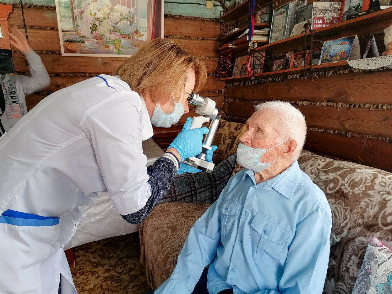 Чебоксарские офтальмологи приехали к 99-летнему ветерану домой и проверили его зрение после операции