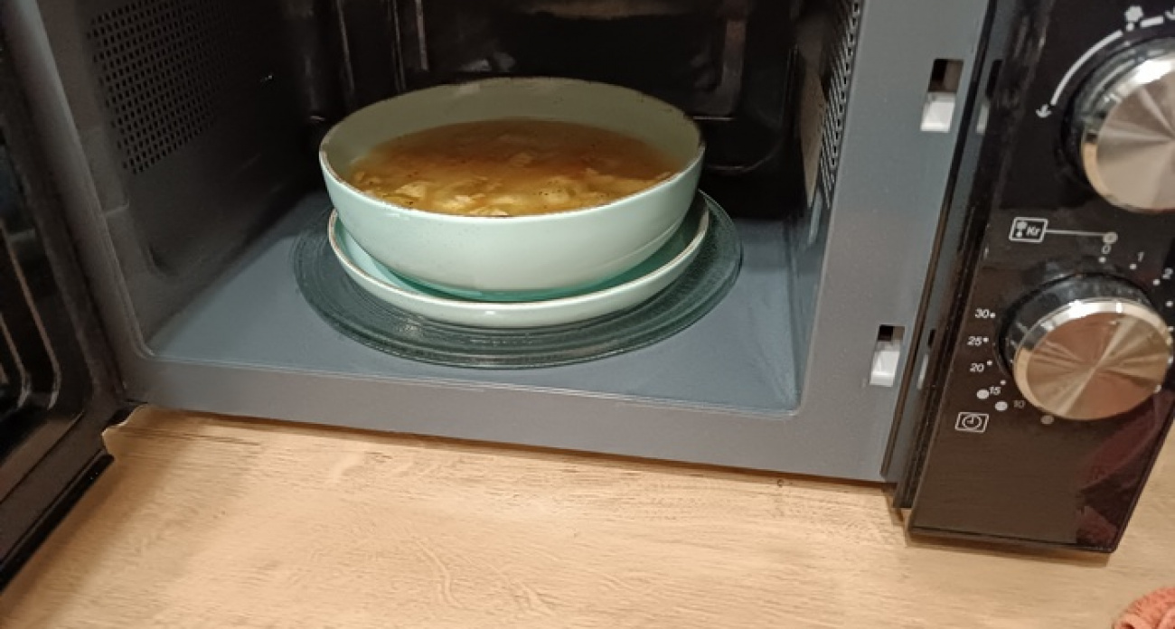 И вот, словно озарение, решение пришло. Простое, гениальное, лежало на поверхности. Почему я не додумался до этого раньше? Теперь процесс разогрева стал в разы удобнее и безопаснее. Секрет в том, чтобы ставить тарелку с супом на обычную плоскую тарелку. Она остается прохладной, и теперь достать горячий суп из микроволновки - проще простого.