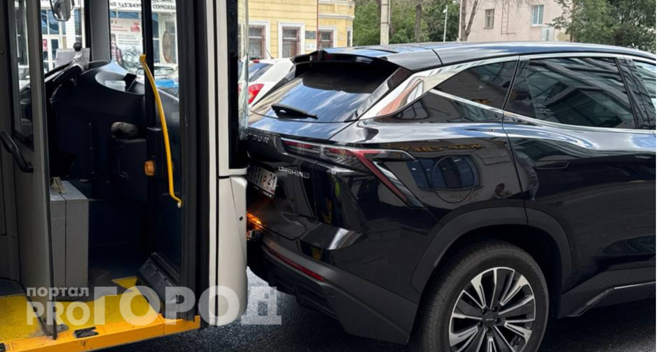 Троллейбус без водителя врезался в автомобиль на остановке в Чебоксарах
