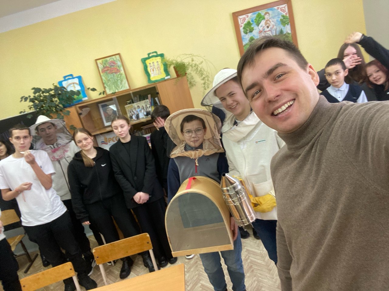 Приезжают школьники и на его пасеку, чтобы познакомиться с этим ремеслом на практике. Помогает мужчине и его собственный сын.
