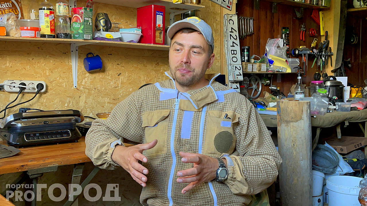 "Может, с виду кажется, что это просто ящики с пчелами, но за моей спиной сейчас практически стоимость квартиры в Чебоксарах", – сравнивает пчеловод, показывая на ряды ульев.