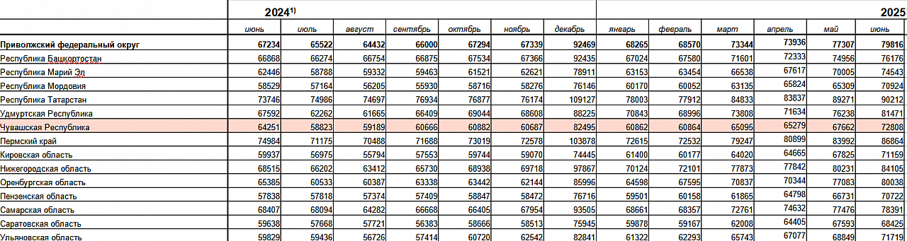 27 августа Росстат опубликовал свежую статистику по среднемесячной заработной плате работников в регионах Российской Федерации. Согласно новым данным, по состоянию на июнь, средняя зарплата жителей Чувашии с прошлого года выросла сразу на несколько тысяч. Подробную информацию опубликовали на сайте Росстата.