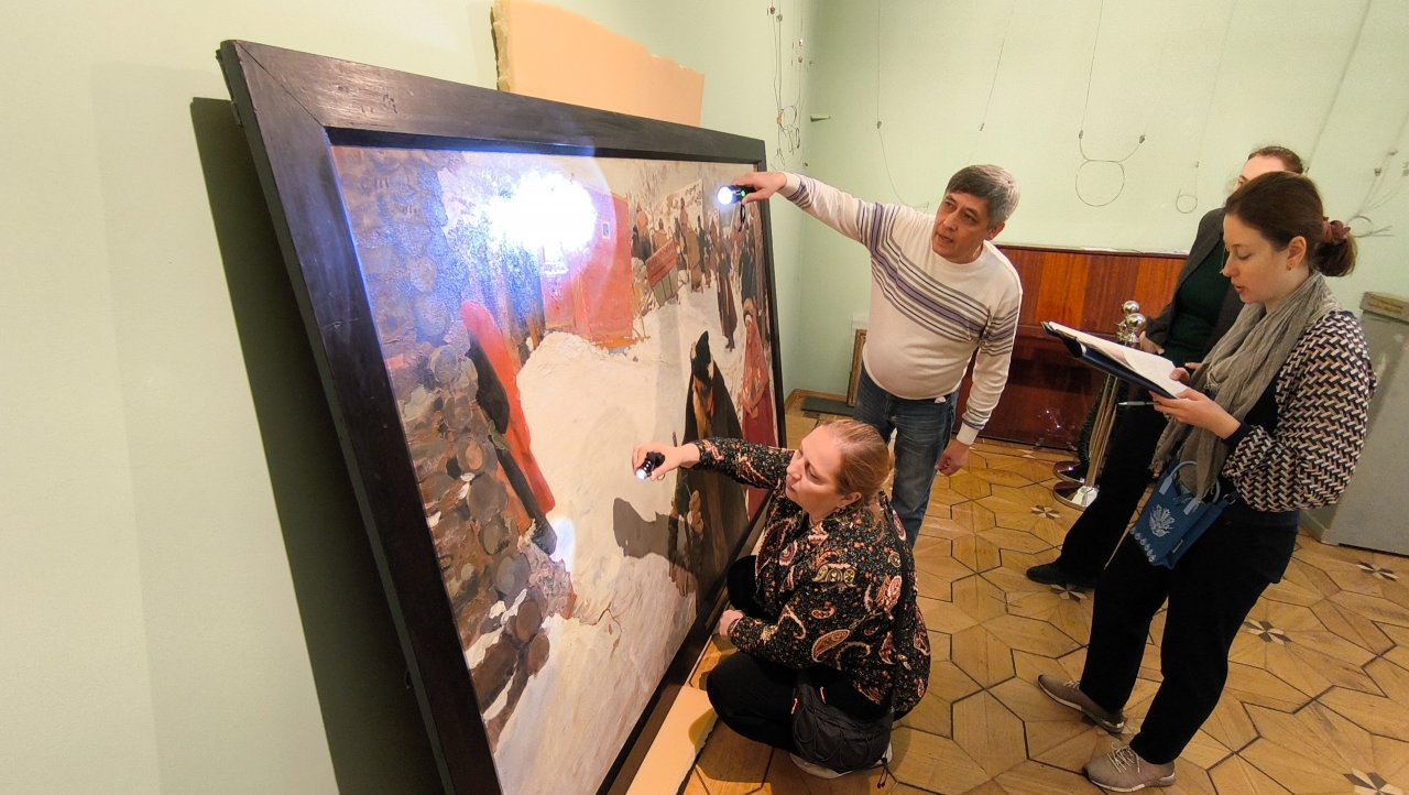 Здесь они сначала прошли процесс акклиматизации, сутки простояв в ящиках. Прием работ проводили реставраторы из обоих музеев.