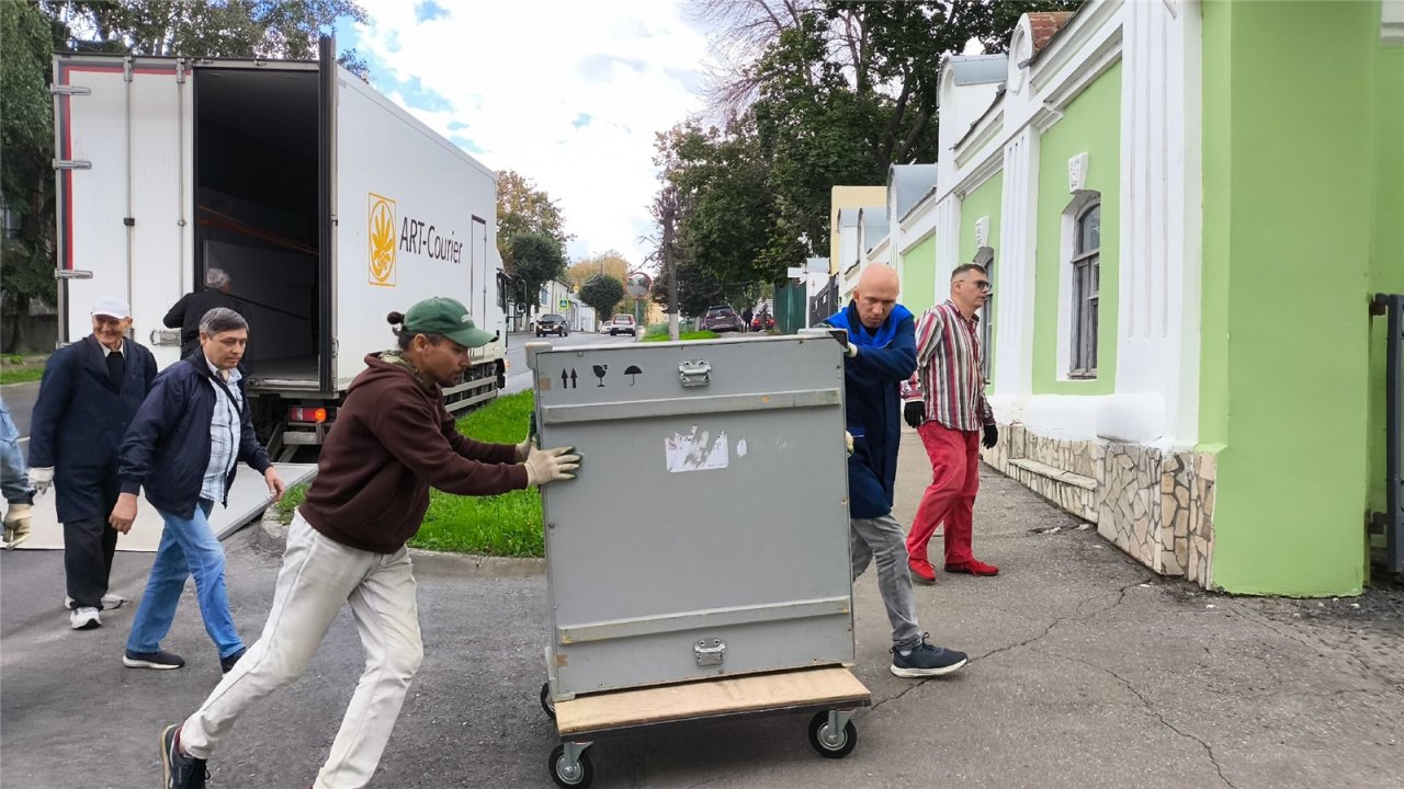 Полотна, упакованные в специальные климатические ящики, привезли в Чувашию на специализированном транспорте.