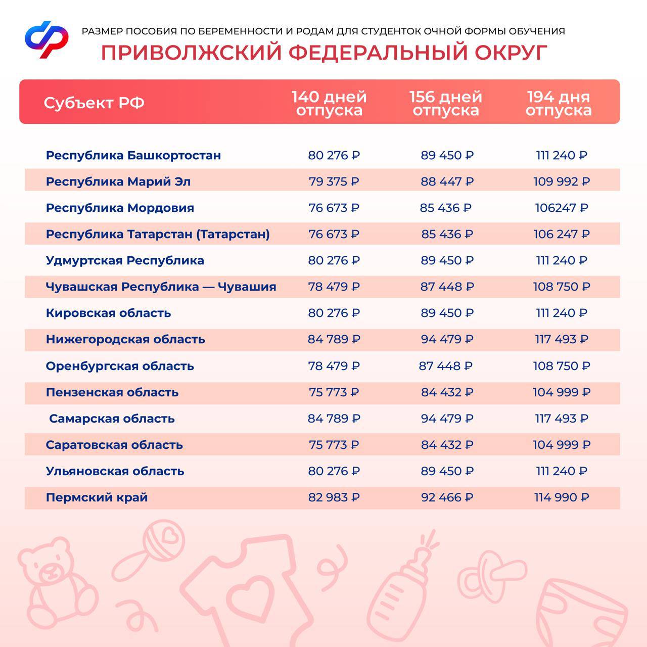 Социальный фонд начал прием заявлений на оформление пособия по беременности и родам, рассчитанное на основе прожиточного минимума, для студенток и аспиранток, которые учатся на очной форме в вузах, колледжах, училищах, техникумах, организациях дополнительного профобразования или научных учреждениях – неважно, на платной или бесплатной основе.