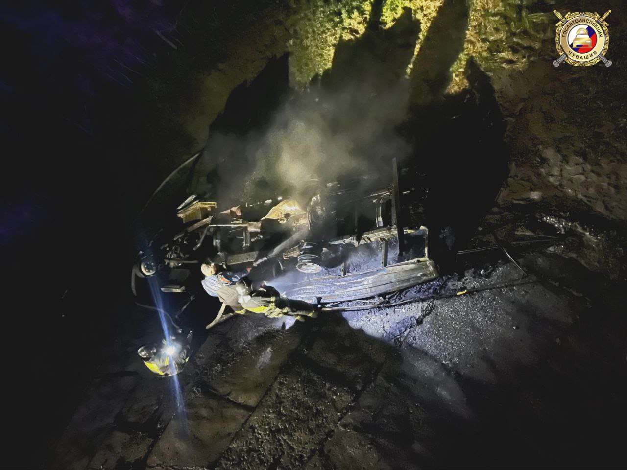 Ночью в Цивильском районе грузовая "Газель" съехала под мост, опрокинулась и загорелась. Машину тушили спасатели. Об этом сообщают в пресс-службе МЧС Чувашии и в ГАИ Чувашии.
