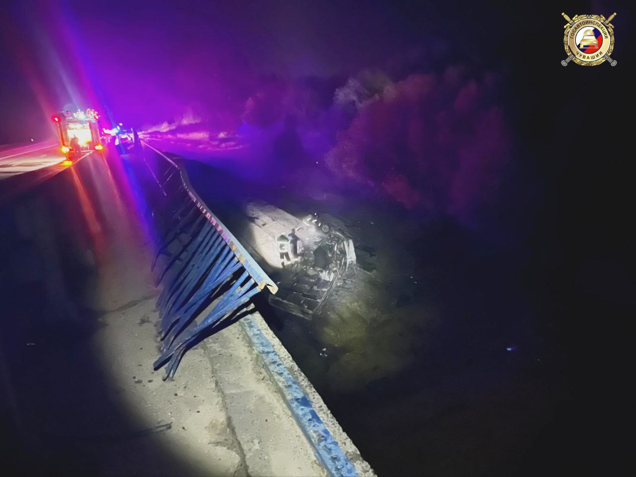На ночной трассе в Чувашии грузовая "Газель" улетела под мост и загорелась