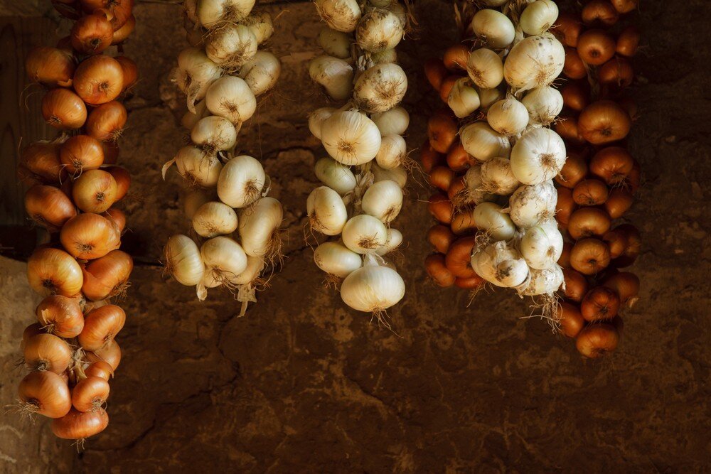 • На кухне: Решетчатые ящики, капроновые чулки, косы из лука/чеснока.